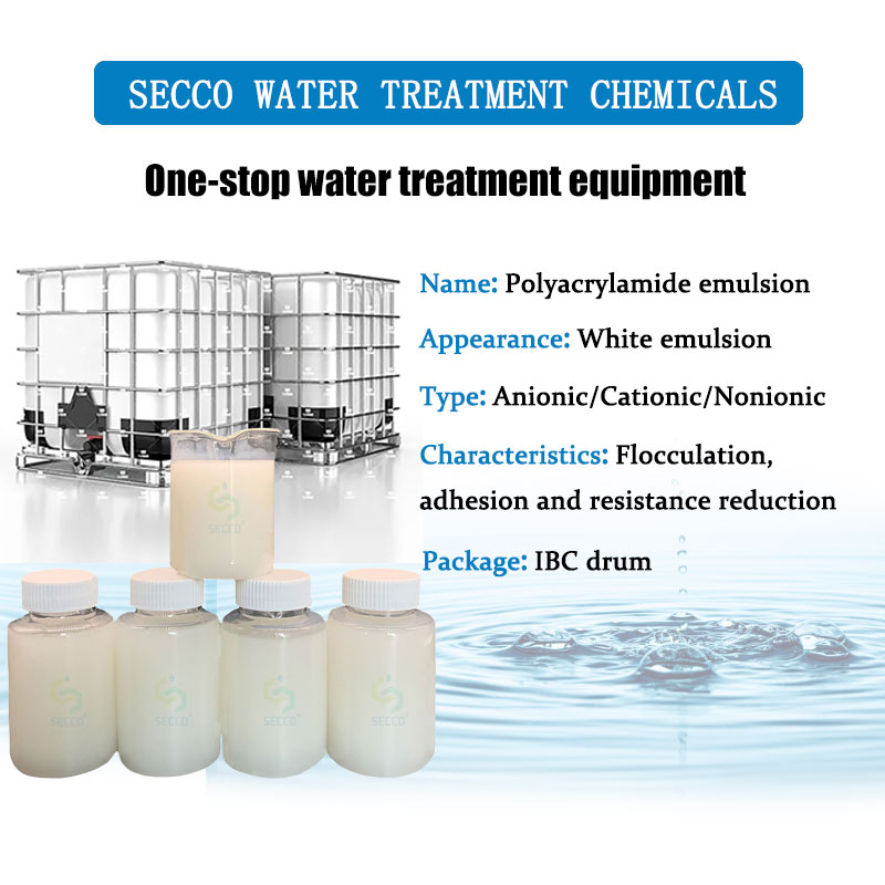 Polyacrylamide emulsion is prepared by dispersion or inverse emulsion polymerization, which is a form of polyacrylamide liquid present. Besides the characteristics of solid polyacrylamide flocculants, through the molecular chain of polar groups to adsorb suspended solids in the water particles, the emulsion could formats the large flocs through bridge between the particles or electricity.